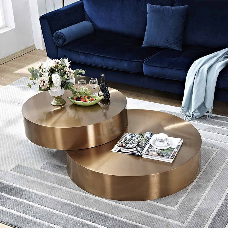 新品后现代拉丝黄铜茶几组合意式轻奢客厅不锈钢圆形桌设计师高端热门设计联盟服务商